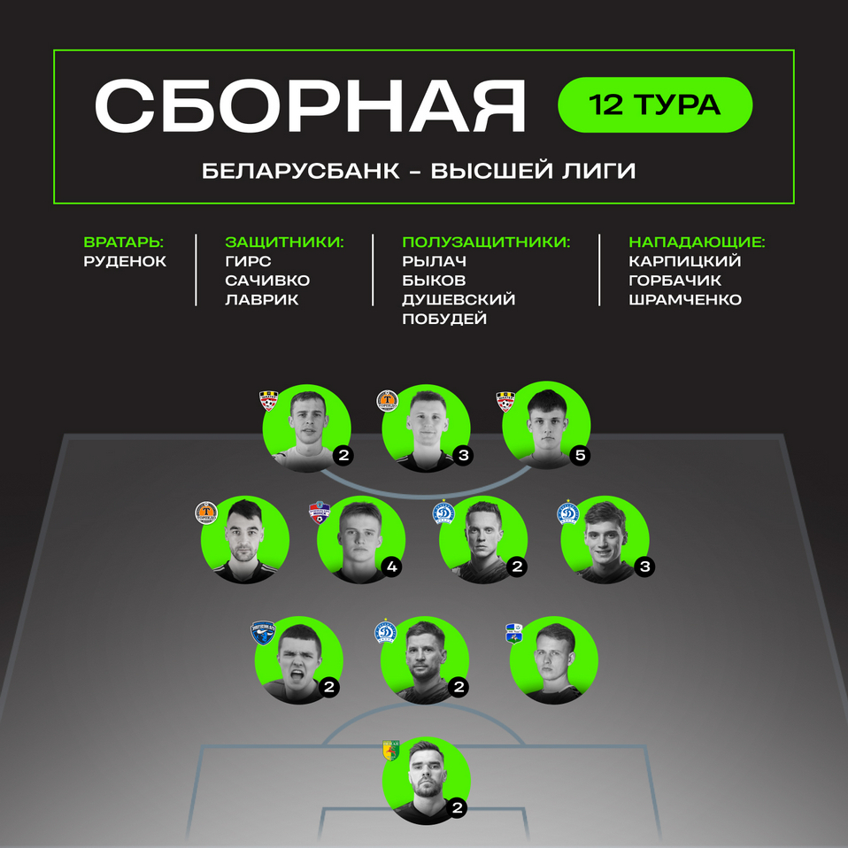 На сайте Bet News презентовали символическую сборную 12-го тура чемпионата Беларуси по футболу.