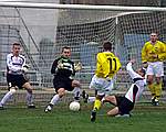 Оно получилось чрезвычайно бурным. Разин резким продольным пасом вывел в штрафную Макрицкого. Ашихмин метнулся навстречу, и результатом стыка стал уверенный жест арбитра на “точку”. Правда, исполнению приговора предшествовало приглашение на поле врачей. В результате обоих столкнувшихся признали неспособными продолжить игру, и под прицел Наумова прямехонько со скамейки запасных поспешил Варивончик. В этом сезоне он изрядно подпортил свою некогда фантастическую “одиннадцатиметровую” статистику. И наш матч исключением не стал. Капитан торпедовцев расправлялся с голкипером дважды, причем правомерность второго пенальти сомнений у зрителей тоже не вызвала — Азаренок на скорости подтолкнул в спину Эду.