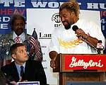 — Хасима Рахмана называли последней линией обороны Америки. Так вот я — первая линия атаки. В моей карьере были взлеты и падения, а с годами пришла мудрость и осознание того, что уже не могу, как раньше, просто драться. Нынче каждый выход на ринг требует тяжелой изнурительной работы над собой. Однако не загадываю наперед. Конечно, всякие мысли посещают: “O’кей, нокаутируй этого парня, потом следующего и продолжай в том же духе”. Но я сейчас просто сконцентрирован на поединке с Ляховичем. Это Владимир Кличко надеется на свой “стальной молот”, а Сергей всегда варьирует удары, потому непонятно, чего от него ожидать в следующую минуту. Впрочем, засилье европейцев уже многим надоело. И я здесь для того, чтобы очистить профессиональный ринг от этого мусора. Шеннон Бриггс — чемпион мира! Красиво звучит! Надеюсь, победа американца вдохнет новую жизнь в профессиональный бокс, и люди вновь станут наслаждаться этим видом спорта. Они хотят нокаутов, хотят крови — они это получат. Уверен, мы отлично проведем время.