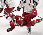 Со словаками в Швеции белорусы уже встречались: подопечные Яна Яшко проверили нашу готовность в преддверии форума в местечке Лонгсхиттон. Тогда дружина Эдуарда Занковца, измученная тяжелой дорогой, потерпела поражение — 3:5. Правда, и вчера было не легче: накопленная хоккеистами за турнир усталость чувствовалась на протяжении всего матча.