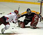 ШАЙБЫ: 1:0 — Мороз (Сокол, 9.36). 1:1 — Мартынюк (Новицкий, Свито, 21.53 — бол.). 2:1 — Выглазов (Рудак, Сенькевич, 26.35). 2:2 — Свито (Страхов, 43.31 — бол.). 2:3 — Суурсоо (Жидких, 43.49). 3:3 — Алехин (Мороз, 46.55). 3:4 — Люткевич (55.07 — бол.).