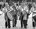 Из Чехии, как, впрочем, немногим ранее из Австрии и Голландии, приехали не по указке. Правда, достаточно многочисленная группа поддержки была раздроблена и разрозненна — трудно даже выделить самый активный чешский сектор. Раскрепощенные и абсолютно спокойные приезжие болельщики не вызывали со стороны белорусской торсиды ни тени агрессии и смущения. Напротив, и без того отнюдь не воинственные “бульбаши”, не слишком верившие в приятную для глаза цифровую информацию на динамовском табло по окончании матча, пребывали в умиротворенном расположении духа. Действительно, чего излишне париться и суетиться? Лучше расслабиться и понаблюдать за игрой еврогранда с обновленной командой земляков — предварительно по давней традиции слегка “подогревшись”. Впрочем, в кои-то веки нашим людям удалось перетрубить и перегудеть “ихних”. Во многом сему поспособствовали “запрещенные барабанщики”, приехавшие из Борисова. Репертуар группы был не слишком разнообразен — все свелось к созданию шумового эффекта. Весьма походившие по стилю одежды и по движениям на Лявонов, чаще всего они музицировали нечто отдаленно напоминавшее пионерские марши и строй-речевки.