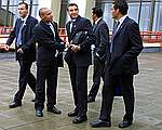 Немецкая педантичность оказалась слегка подкорректирована белорусской осенней погодой — из-за дождя и густых свинцовых туч, нависших над нашей столицей, лайнер с представительной делегацией на борту приземлился в Национальном аэропорту “Минск” на десять минут позже запланированного. Вместе с футболистами “Шальке-04” самолет доставил на белорусскую землю внушительное число болельщиков и журналистов. Однако их единение закончилось сразу по приземлении: богу — богово, а кесарю — кесарево. Игроки, тренеры и обслуживающий персонал команды, все сплошь статные, подтянутые и в костюмах с иголочки, появились в холле аэропорта из VIP-зала буквально через десять минут после приземления. Дальнейший маршрут оригинальностью не отличался: из холла — в автобус. Для сопровождавших же никаких льгот не предусматривалось — таможенный досмотр им пришлось пройти по полной программе. Первый представитель немецких масс-медиа появился в холле в тот момент, когда футболистов уже и след простыл. Однако корреспондентский десант “ПБ”, понятное дело, интересовала именно элитная группа. Показалось, что немецкие игроки были несколько удивлены столь скромным вниманием к их персонам. И действительно, среди встречавших не было ни охотников за автографами, ни телевидения, ни обыкновенных зевак, желавших воочию поглазеть на звезд европейского футбола. Самым титулованным среди прибывших был, безусловно, Андреас Меллер. Еще бы, сложно даже припомнить, когда нашу страну посещал футболист, увенчанный лаврами чемпиона мира. А ведь у Андреаса это далеко не единственный громкий титул. Несмотря на все свои регалии и острую нехватку времени (практически все его партнеры уже заняли места в автобусе), плеймейкер “Шальке-04” охотно согласился пообщаться с корреспондентом “ПБ”. Не отказал нам в беседе и польский легионер Томаш Хайто.