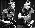 В полуфиналах и финалах защитницы сражались с нападающими. Счет получился равным — 2:2. Костромина взяла только первый сет у Вероники Павлович, а потом та показала, как нужно разбираться “по защите” — 1-4. В прошлом году Наталье Цыганковой удалось победить всех и стать чемпионкой страны. И в этот раз она стремилась повторить успех. Но в матче против Виктории Павлович действовала на редкость однообразно. Характерная картина: Наташа мощно атакует, Вика, стоя метрах в четырех от стола, возвращает мячи сопернице. Той бы попытаться сменить направление атаки или “укоротить” мяч, чтобы он плюхнулся у сетки, чтобы дезориентировать соперницу. Но Цыганкова продолжала “избивать” шарик. Похоже, тактическое однообразие и неумение перестроиться в ходе поединка (чистой воды психология!) как раз и мешают ей прогрессировать.
