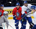 По ходу занятия нельзя было не обратить внимания на несколько примечательных моментов. Первый — отсутствие на льду Рихарда Линтнера. Как выяснилось, все еще не вполне оправившийся от травмы словак работал в тренажерном зале по индивидуальной программе. Под занавес тренировки (и это второй момент) из ее недр появился Ларс Хауген. Продолжающий лечение травмированного паха норвежский олимпиец выглядел бодрым и веселым, а заодно порадовал определенно прогрессирующими познаниями в русском. На англоязычный вопрос, когда, мол, ожидать его возвращения на лед, голкипер ответил с улыбкой “через неделья”, что позже нашло косвенное подтверждение в разговоре с главкомом “зубров”.