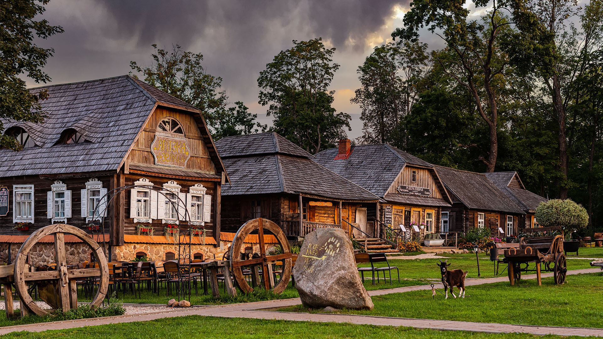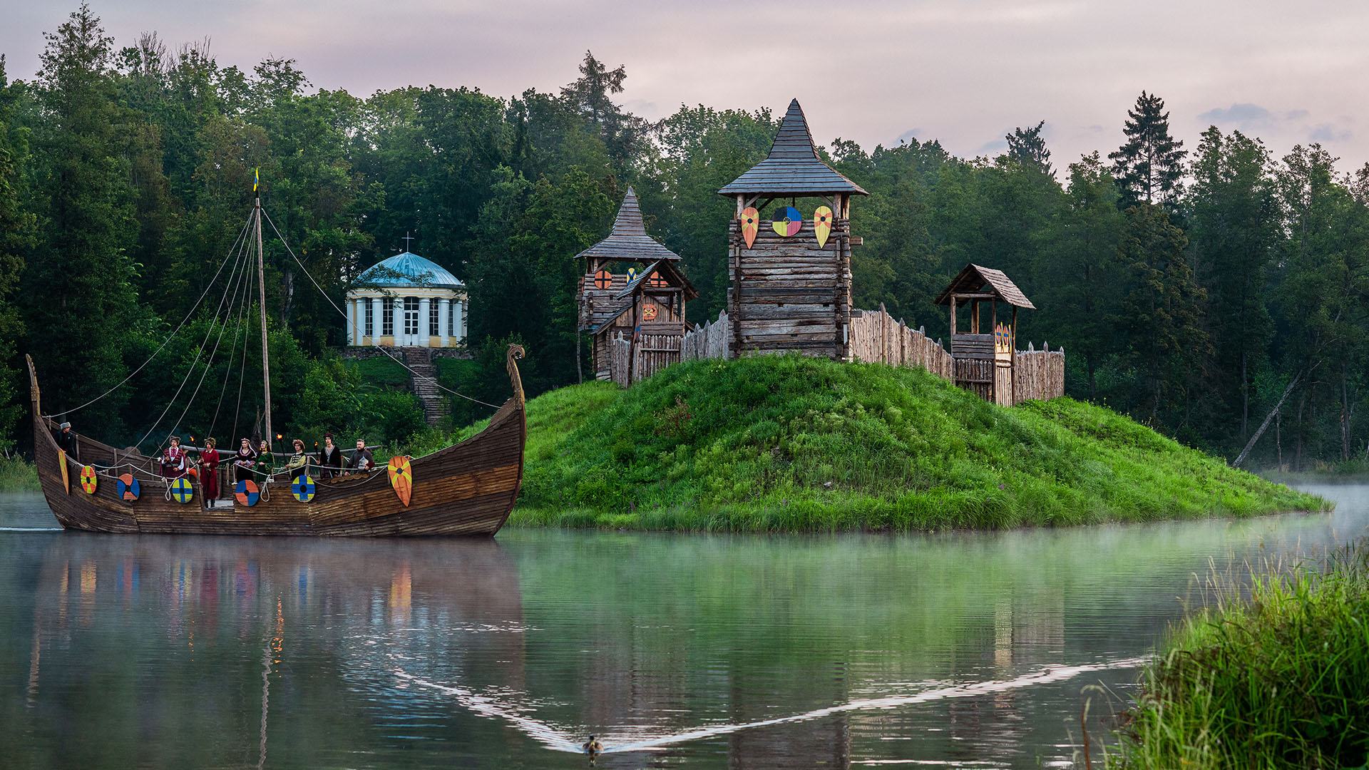 Здесь история оживает: можно пройтись по аллее мегалитов, прикоснуться к 50-тонному «вещему камню» у избушки ведуньи и даже выйти в плавание на точной копии скандинавского драккара. Особый дух места создают восстановленные постройки: замок Миндовга, водяная мельница, корчма и усадьба рода Ленских.