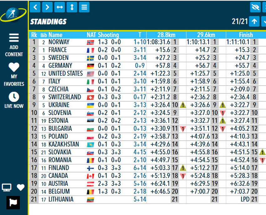 Второе место заняли французские биатлонисты, третьими стали спортсмены из Швеции.