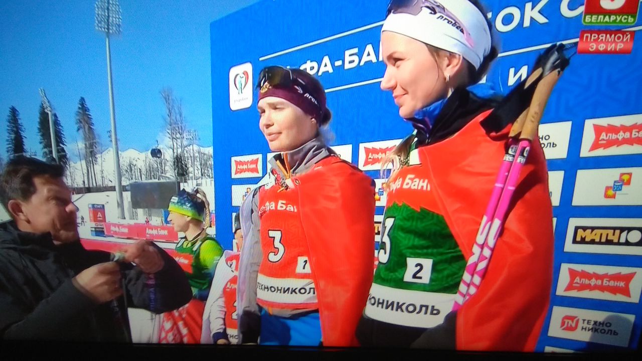 Анна Сола не вышла на награждение командного спринта, в котором она и Динара Смольская добыли серебро. На последнем этапе эстафеты, которую еще называют спринтерской и которая завершала сочинский этап Кубка Содружества, Сола после промахов дважды мотала штрафные круги, но вывела свой дуэт на первое место. Смольская, несмотря на более точную стрельбу, не смогла удержать лидерство. На последний отрезок она ушла более чем на 20 секунд раньше Наталии Шевченко, но проиграла россиянке схватку за золото.