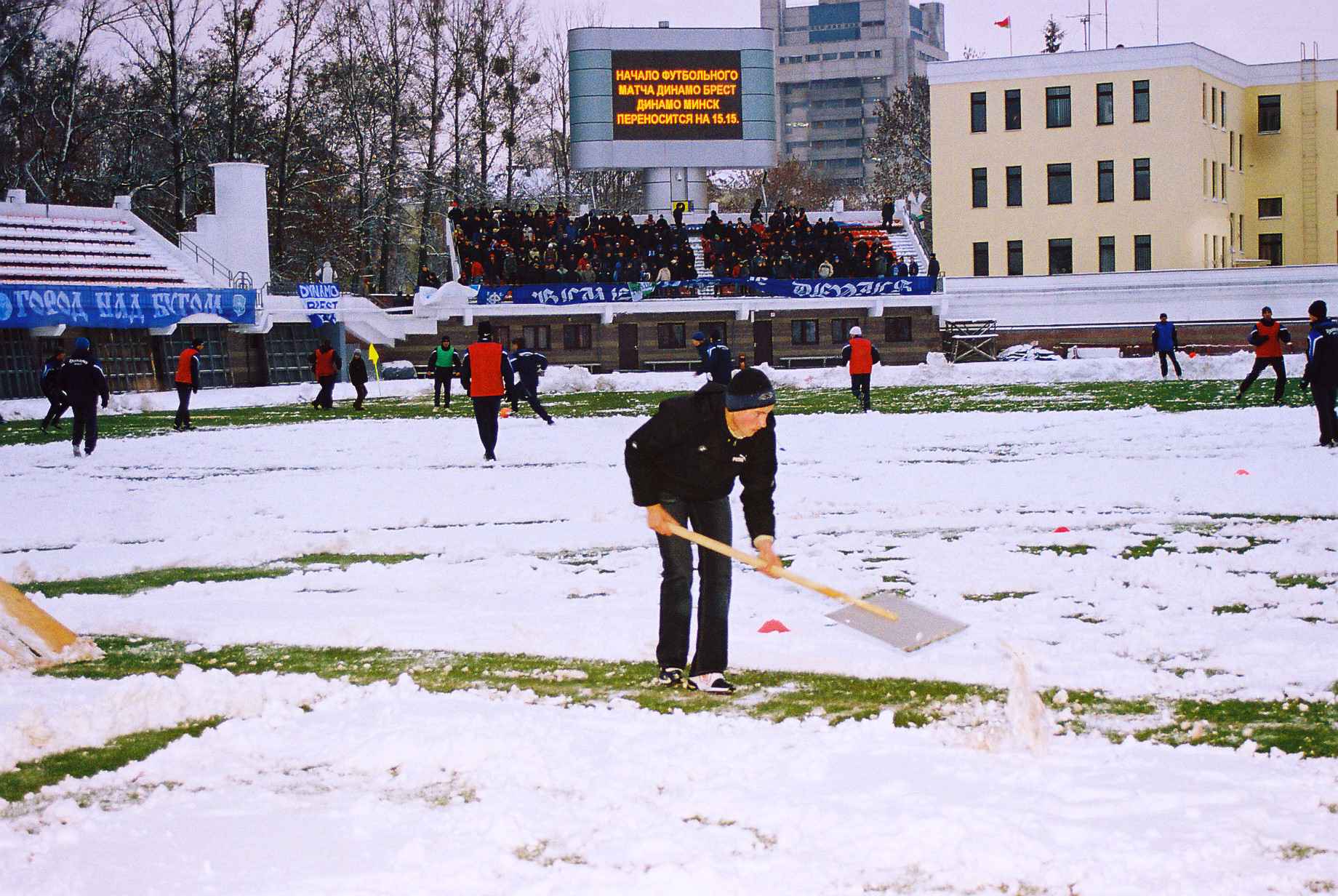 Поединок чемпионата Беларуси по футболу 4 ноября 2006 года между брестским и минским «Динамо» начался с двухчасовым опозданием из-за обильного снегопада. Наводить порядок после разгула природы на ОСК «Брестский» пришлось всем миром.