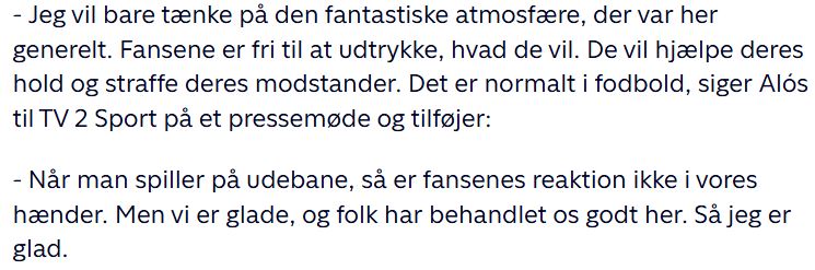 Когда играешь на выезде, реакция болельщиков не в нашей власти. Но мы счастливы, и люди здесь к нам хорошо относятся. Поэтому и я счастлив, — цитирует Алоса TV 2 Sport.