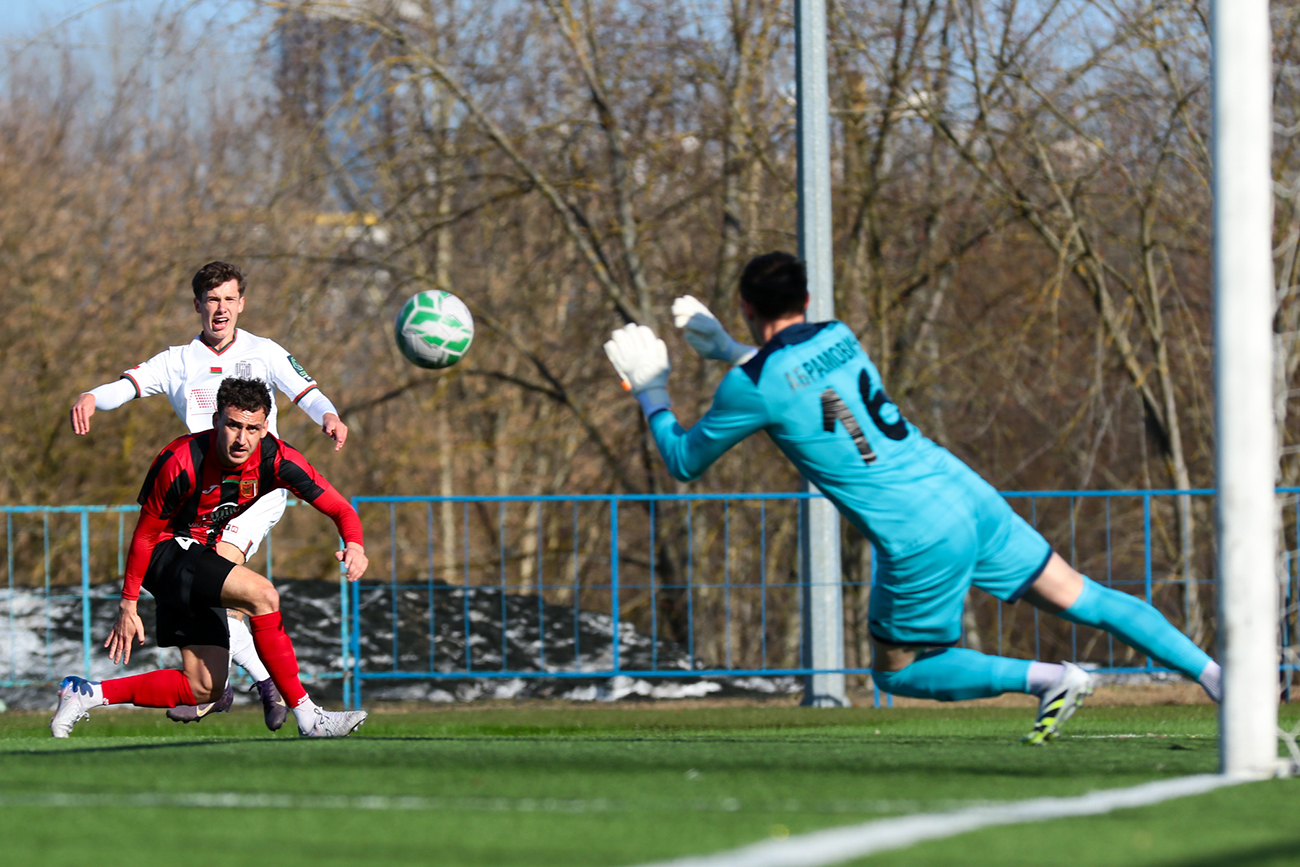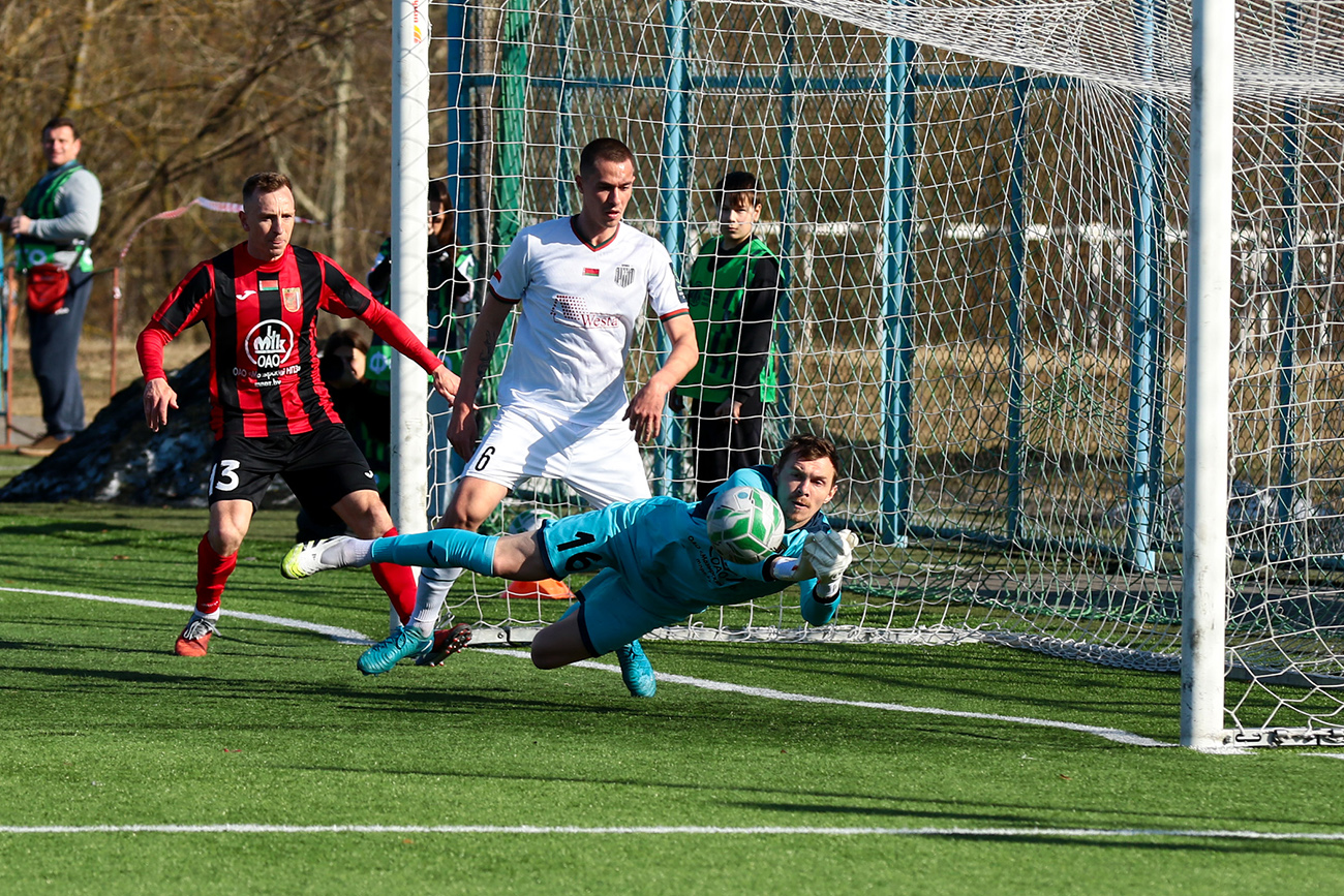 Но эта неприятность не стала последней для парней Игоря Воронкова. Прозаичный розыгрыш мяча от собственных ворот в их исполнении вдруг превратился в фарс. Голкипер отпасовал Капленко, тот неожиданно переадресовал мяч… Соловью. А дальше — дело техники, благо с этим у мозырского голеадора полный порядок — 0:2.