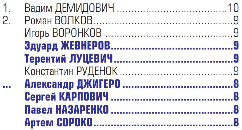 Как видим, антиподом Капову выступает Вадим Демидович, отметившийся в десяти клубах высшей лиги («Динамо» Бр — 2004-09, «Неман» — 2010-11, «Гомель» — 2012, «Торпедо»-БелАЗ — 2012, 2015-16, «Белшина» — 2013, «Нафтан» — 2014-15, «Динамо» Мн — 2017, «Минск» — 2017, «Торпедо» Мн — 2018, «Днепр» — 2018). Близки к повторению его сомнительного достижения Эдуард Жевнеров из «Минска» и Терентий Луцевич из «Славии», — пишет журналист.