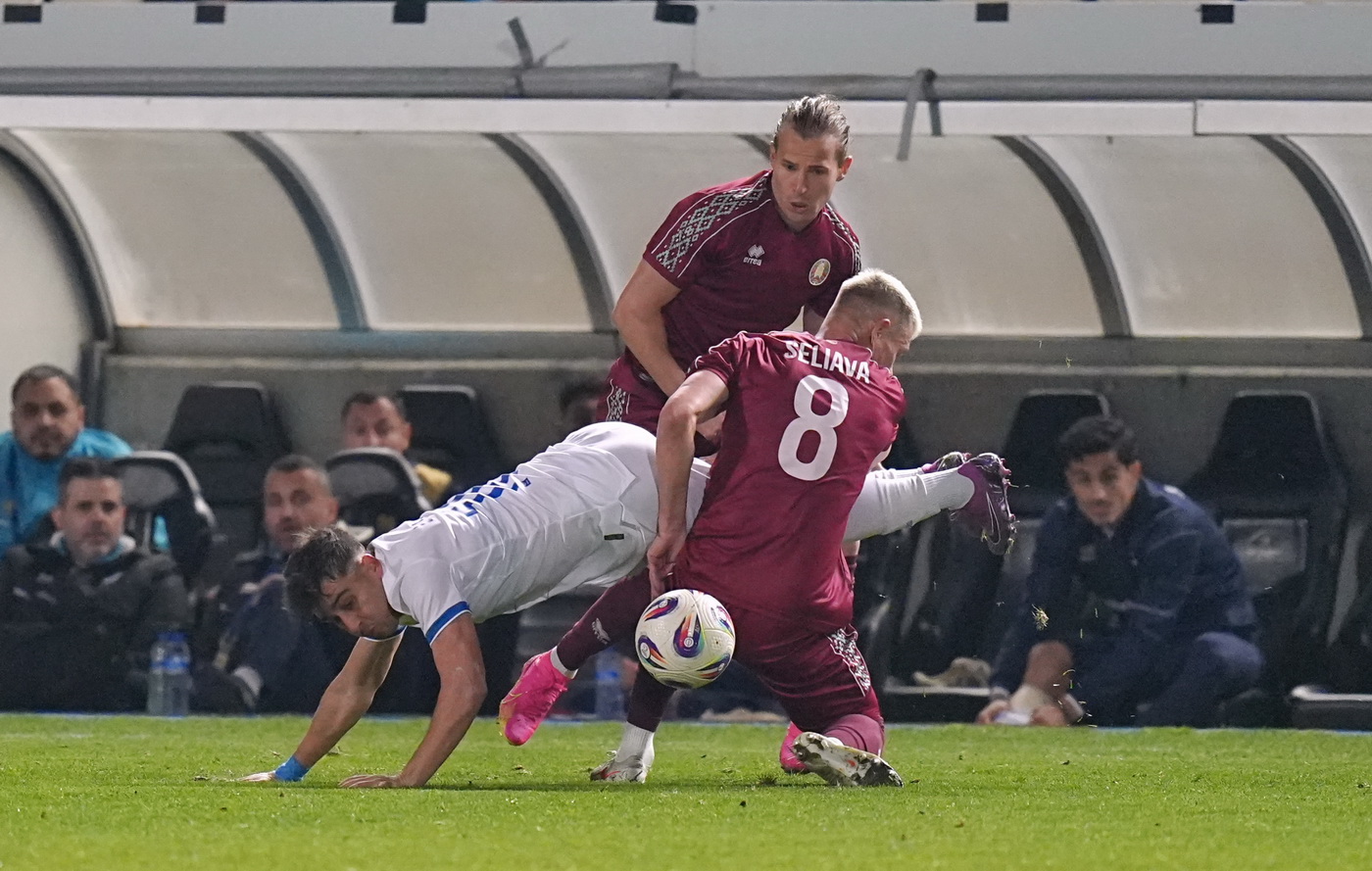 БЕЛАРУСЬ (4-3-3): Лапоухов — Калинин (Бегунов, 92+), З.Волков, Тихомиров, Печенин (Г.Шевченко, 92+) — Эбонг (Варданян, 71), Е.Яблонский (к) (Селява, 46+), Р.Лисакович (Концевой, 71) — Шуманский (Ю.Ковалев, 60), Барковский (Морозов, 60), Громыко (Галята, 60).