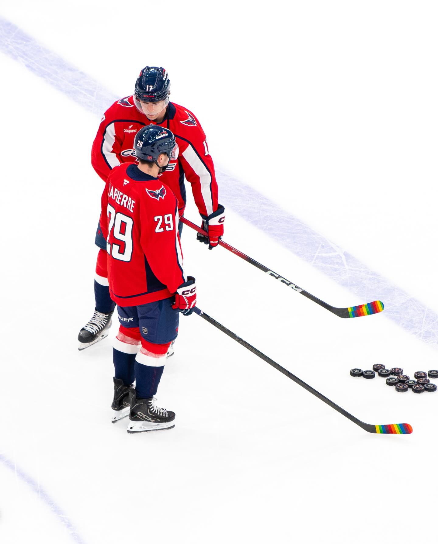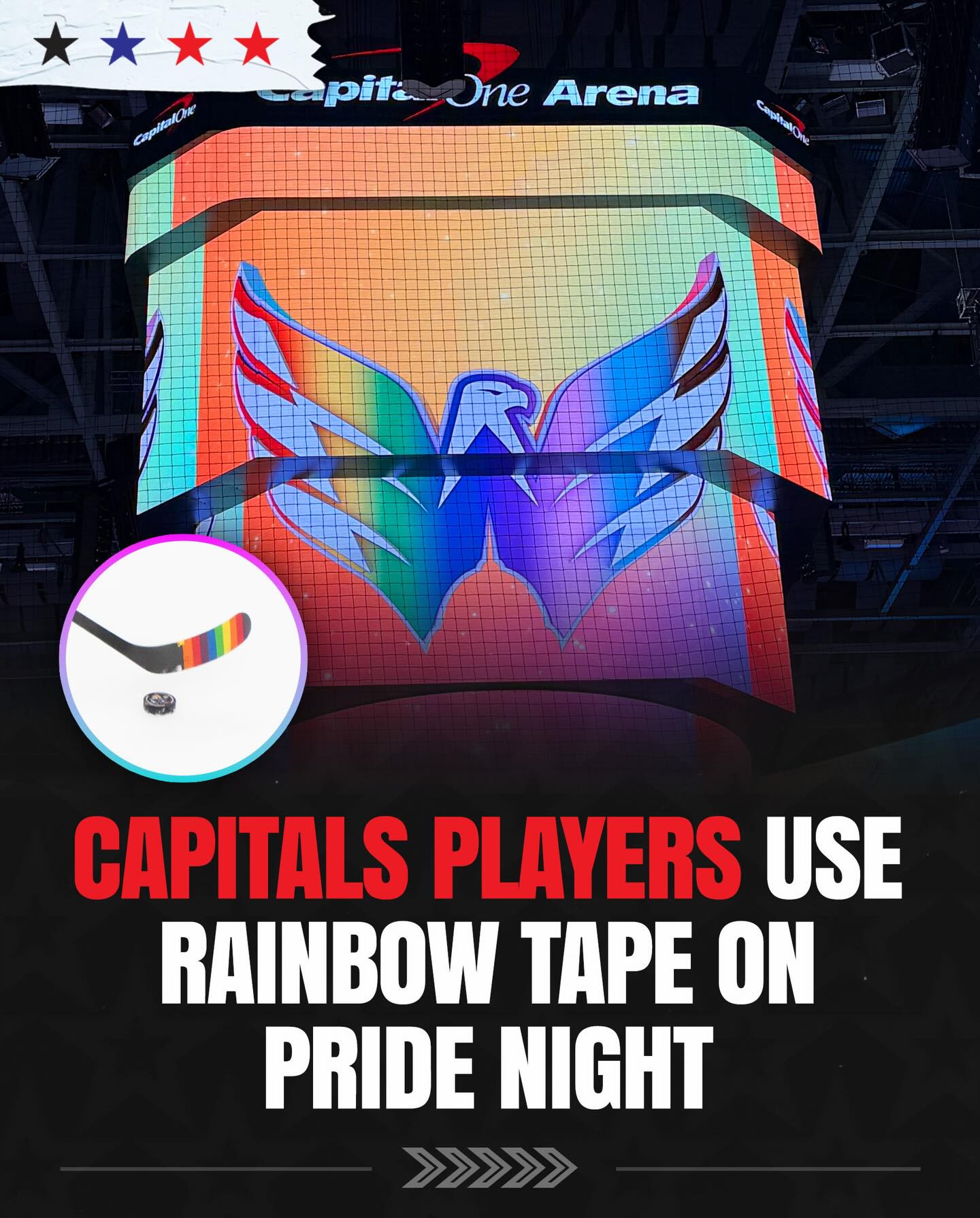 В рамках акции игроки «Вашингтона» обмотали крюки клюшек лентой радужных цветов.