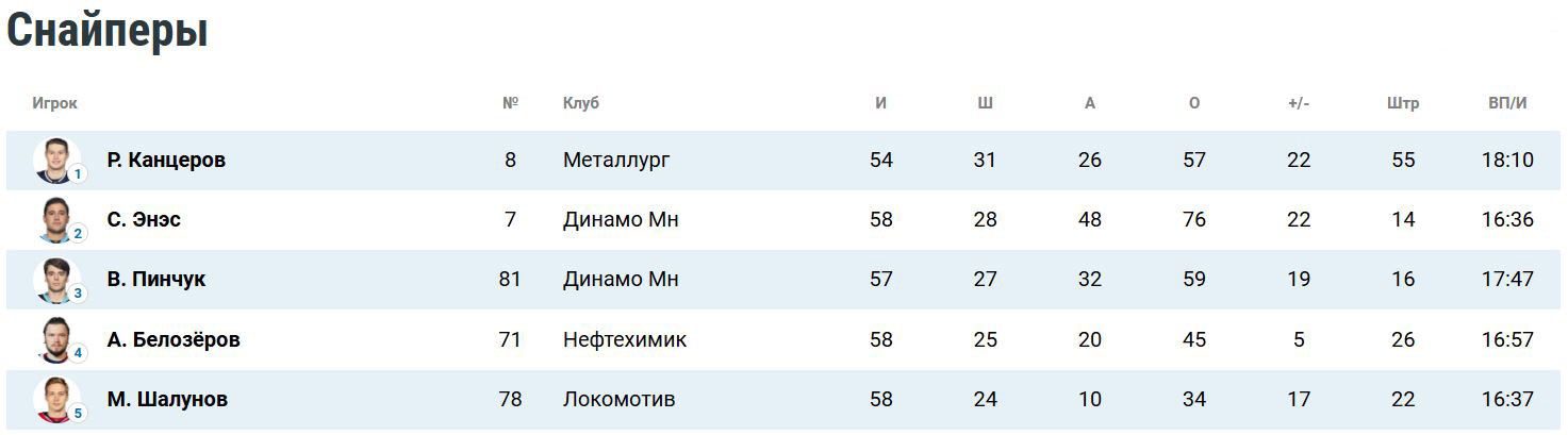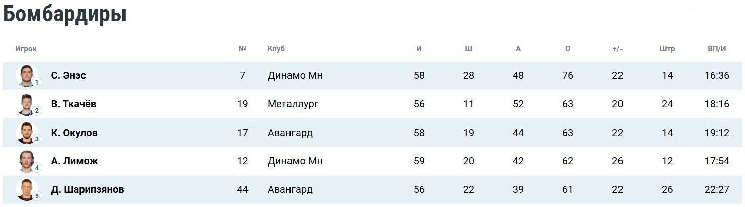 Энас продолжает лидировать в топе лучших бомбардиров КХЛ: 76 (28+48) очков после 58 игр. У преследователя Владимира Ткачева из «Металлурга» 63 (11+52) балла.