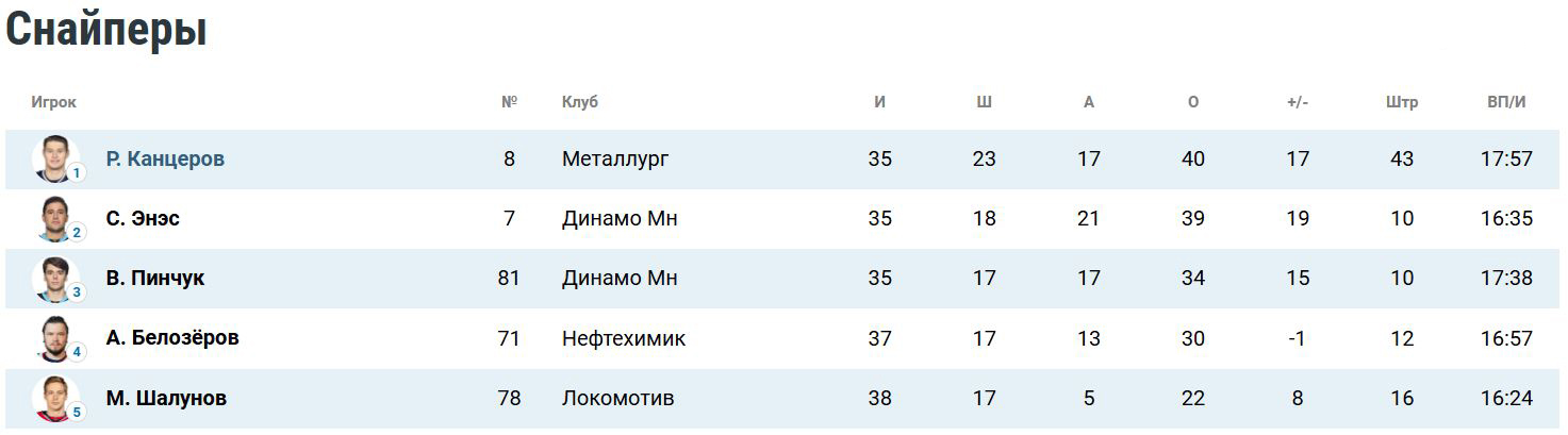 Виталий Пинчук поднялся на третью снайперскую строчку с 17 шайбами.