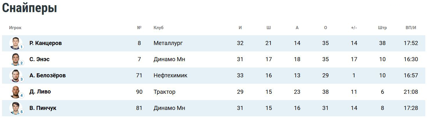 Отметим также, что в топ-5 снайперов лиги вошел Виталий Пинчук, забросивший «Адмиралу» одну шайбу. У него в сезоне уже 15 голов.