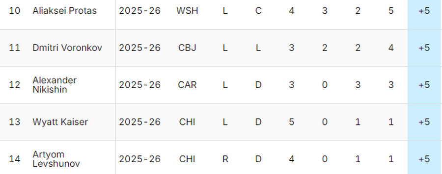 В списке самых полезных игроков текущего чемпионата НХЛ значатся сразу два белоруса. Нападающий «Вашингтона» Алексей Протас и защитник «Чикаго» Артем Левшунов имеют показатель полезности +5 и делят в этой номинации места с 5-го по 14-е.