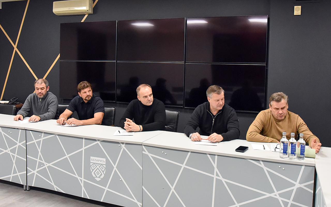 Председатель Федерации хоккея Беларуси Александр Богданович провел рабочую встречу с тренерским штабом национальной сборной (включая Дмитрия Квартальнова) и генеральным менеджером команды Артемом Каркоцким. Главной темой обсуждения стала подготовка к участию в Кубке Первого канала.
