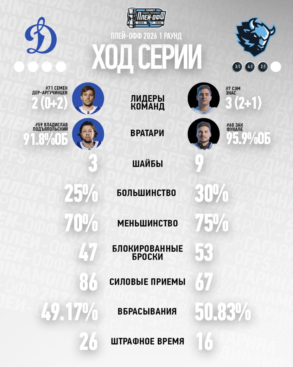 Пресс-служба «зубров» собрала главные статистические цифры противостояния к этому моменту.