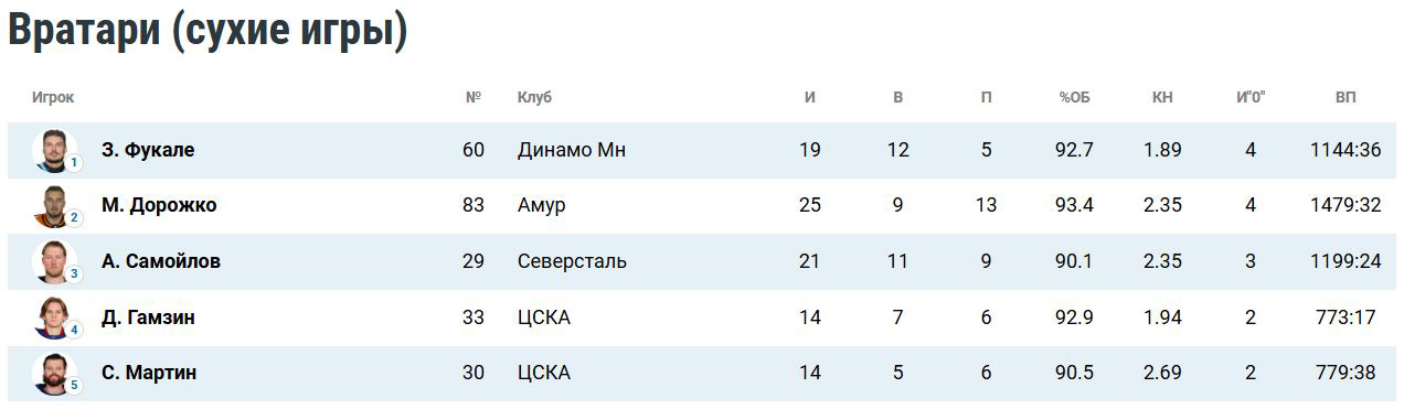 Канадский голкипер минского «Динамо» Зак Фукале вышел на первое место в КХЛ по коэффициенту надежности: 1.89 (процент отраженных бросков — 92.7).