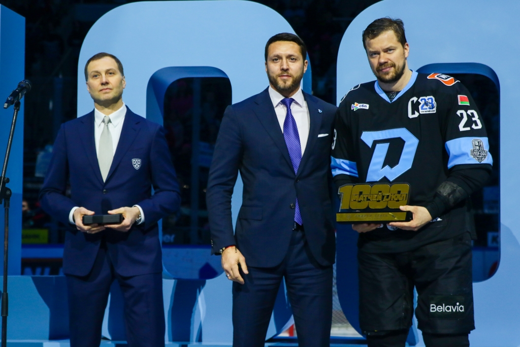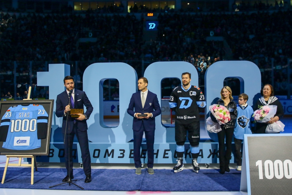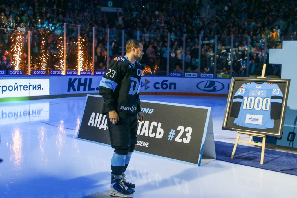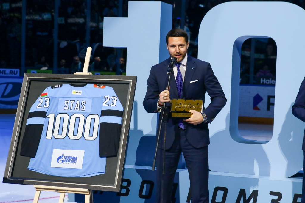 В субботу, 11 апреля, минское «Динамо» принимает казанский «Ак Барс» во втором матче серии 1/4 финала Кубка Гагарина. Встреча, проходящая на «Минск-Арене», стала 1000-й в КХЛ для 37-летнего форварда «зубров» Андрея Стася. Перед стартовым вбрасыванием прошла торжественная церемония в честь капитана «зубров».