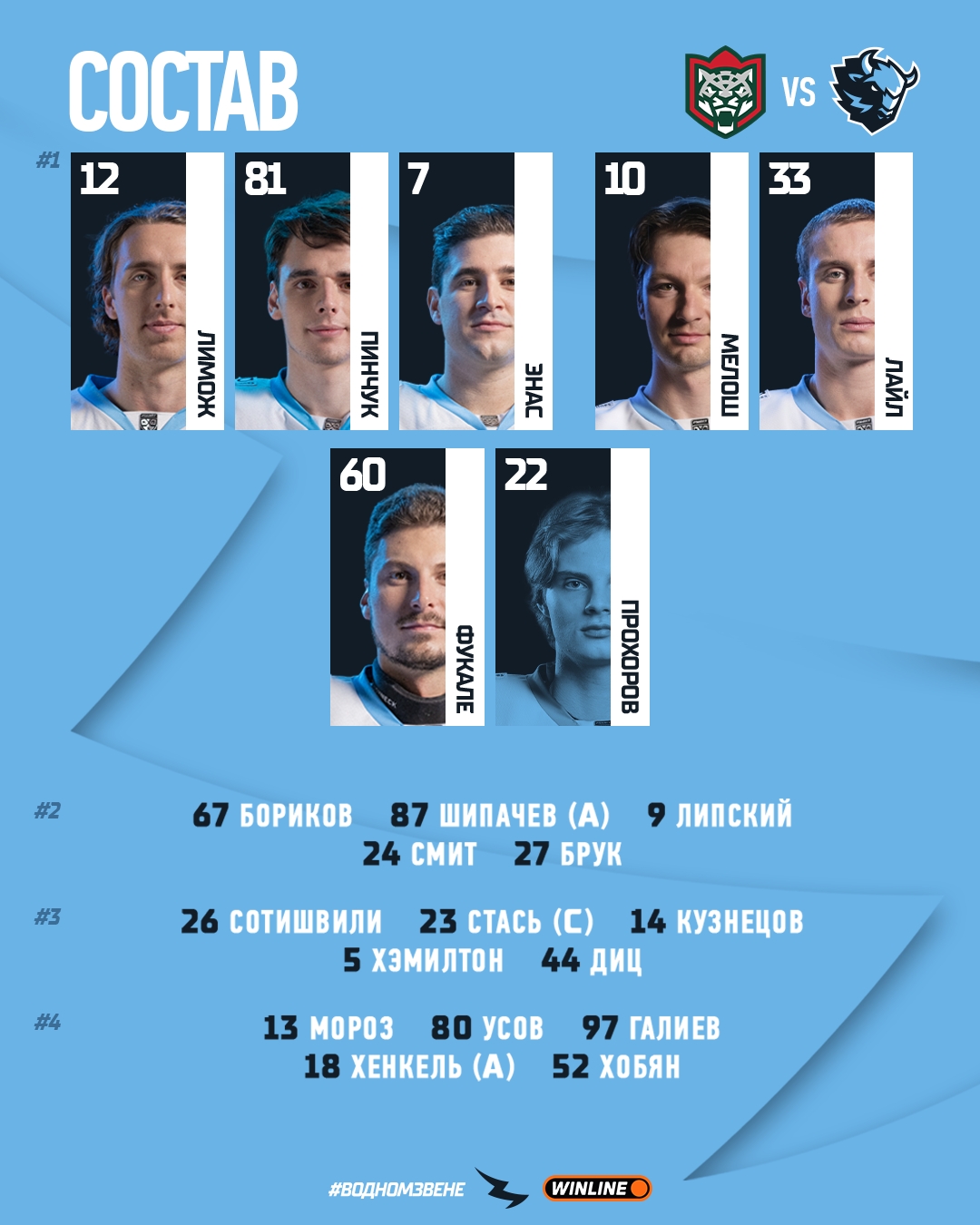 АК БАРС: Бердин (Билялов); Лямкин — Миллер, Барабанов — Семенов (А) — Яшкин; Карпухин — Марченко (К), Алистров — Хмелевски — Денисенко; Фальковский — Князев, Биро — Сафонов — Галимов; Дыняк — Фисенко (А) — Кателевский; Замалтдинов.