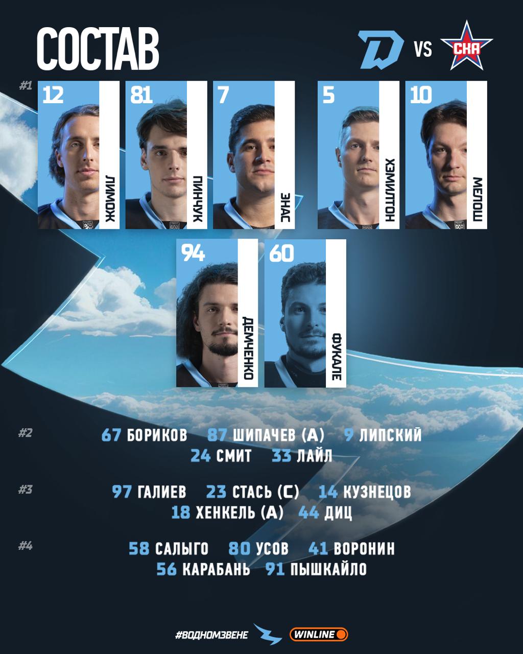 СКА: Иванов (Плешков); Филлипс — Сапего, Лайпсик — Короткий — Хайруллин (А); Савиков — Коледов, Дишковский — Недопекин — Поляков; Педан — Менелл, Уилсон — Бландизи — Гримальди; Зыков (А) — Плотников (К) — Голдобин; Зеленов.