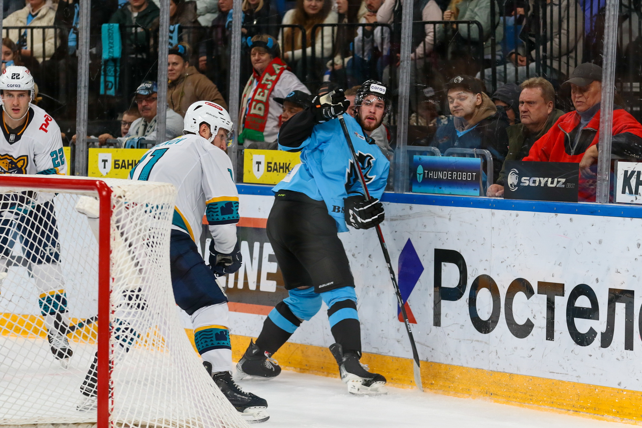 Исход встречи в пользу «зубров» (8:2) был предопределен на 19-й минуте матча, когда большой несгораемый пятиминутный штраф за атаку в область головы и шеи получил защитник «Сочи» Максим Березин. После чего на старте второго периода в ворота «Сочи» влетели четыре шайбы подряд в течение двух с половиной минут.
