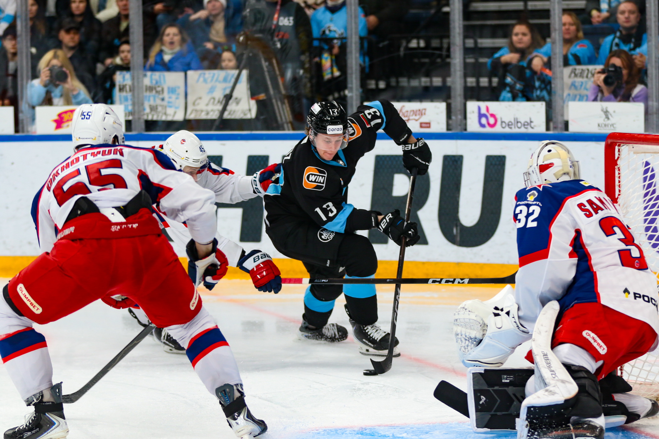 ШАЙБЫ: 1:0 — Бориков (Шипачев, Смит, 21.05). 2:0 — Энас (Пинчук, Лимож, 22.25-бол.). 3:0 — Стась (Бориков, Диц, 26.03-бол.). 3:1 — Бучельников (Нестеров, Зернов, 29.09-бол.). 3:2 — Абрамов (Гурьянов, Рой, 44.51). 4:2 — Пышкайло (Мороз, Диц, 48.09). 5:2 — Сотишвили (Хенкель, Стась, 58.39, п.в.).