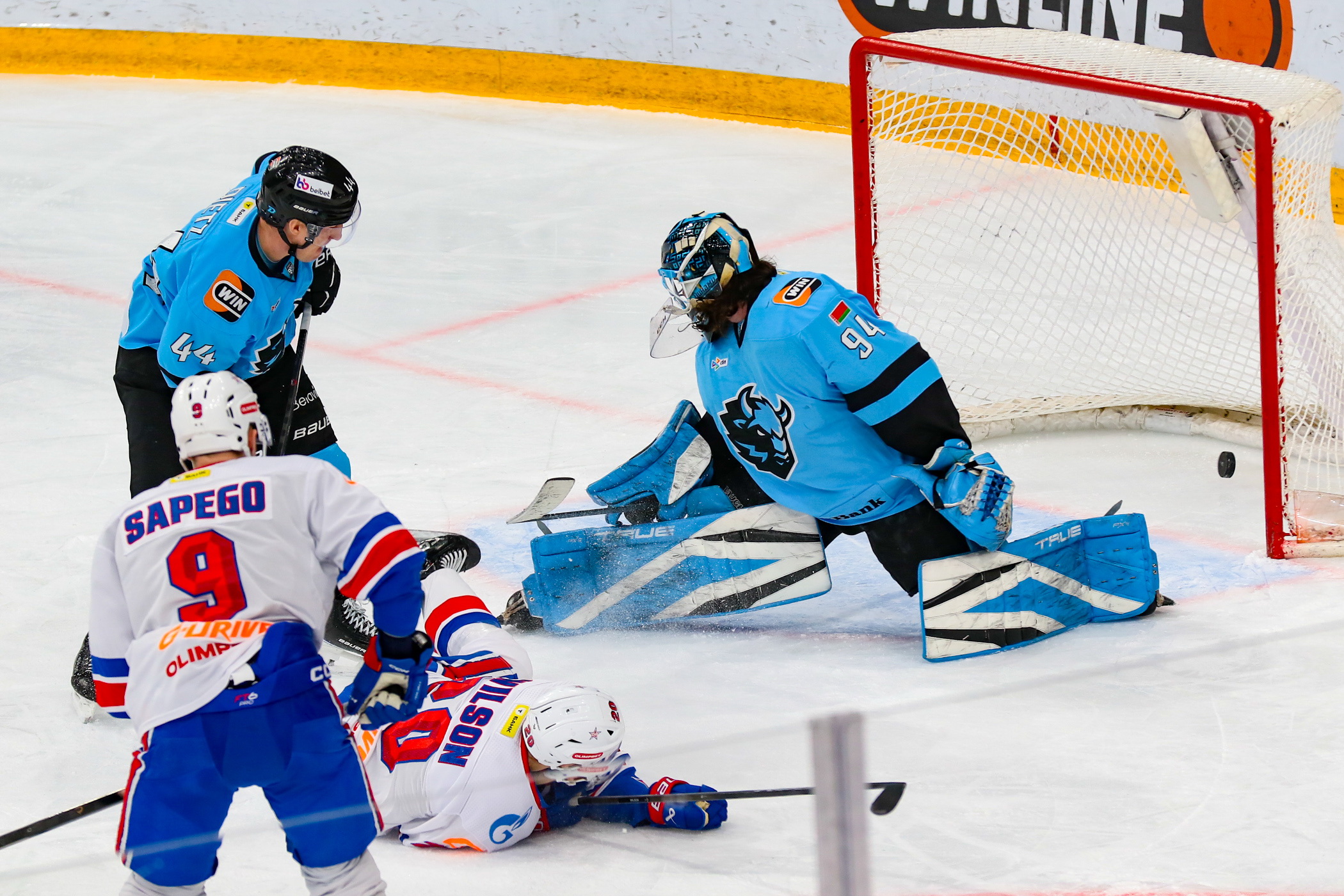 После третьей пропущенной шайбы голкипер «зубров» Василий Демченко на 27-й минуте встречи был заменен на Зака Фукале.