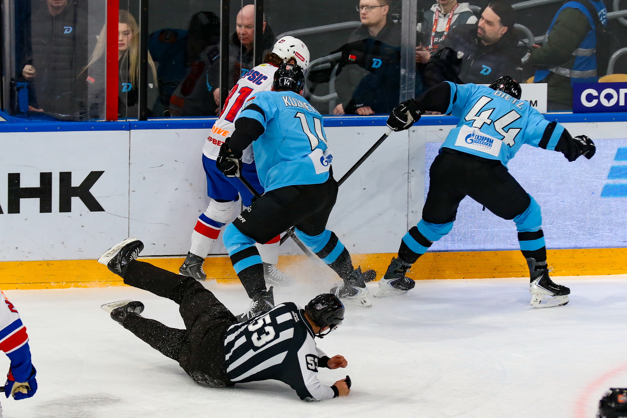 В рамках регулярного чемпионата КХЛ минское «Динамо» принимало СКА и уступило в серии буллитов.