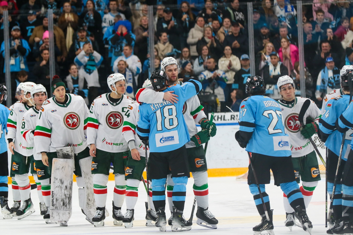 ШАЙБЫ: 0:1 — Хмелевски (Барабанов, Денисенко, 18.51-бол.). 1:1 — Галиев (Усов, 23.45). 1:2 — Галимов (Марченко, 31.02). 2:2 — Смит (Галиев, Энас, 49.17). 2:3 — Фисенко (Дыняк, Терехов, 50.53). 3:3 — Кузнецов (Стась, Сотишвили, 54.37). 4:3 — Шипачев (Хенкель, 56.15).