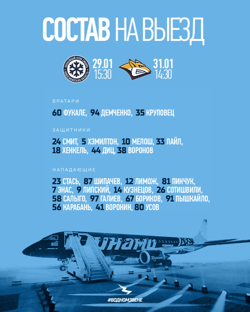 Минское «Динамо» завершит январь матчами в Новосибирске против «Сибири» (29 января) и в Магнитогорске против «Металлурга» (31 января).