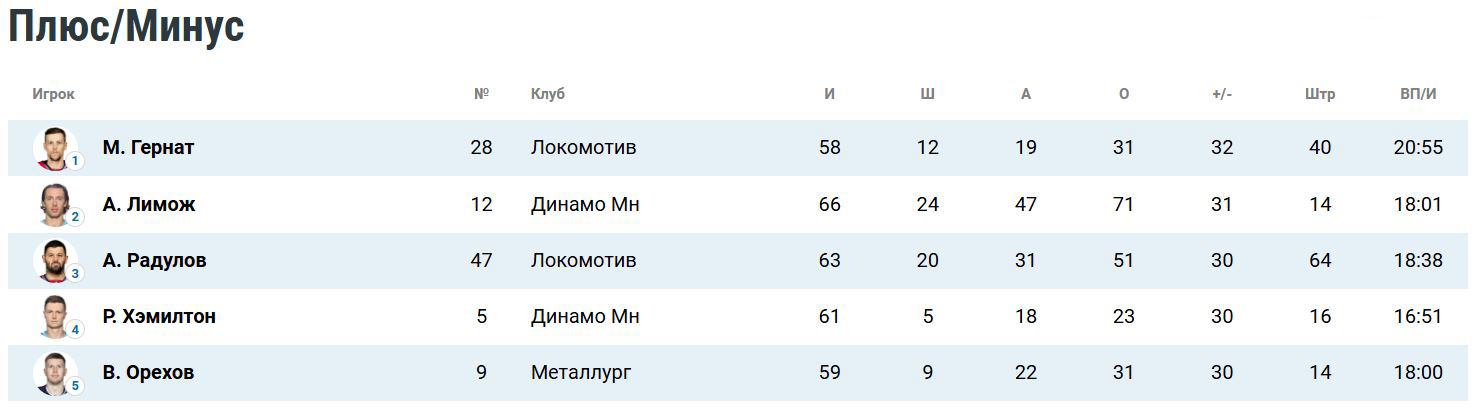 Статистика отражает разницу между заброшенными и пропущенными шайбами в момент, когда хоккеист находится на льду, и помогает оценить, насколько он эффективен в обороне и атаке.