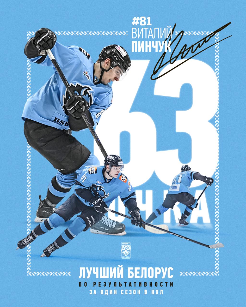 Пинчук тем самым стал абсолютным рекордсменом по результативности среди белорусских хоккеистов в КХЛ за один сезон.