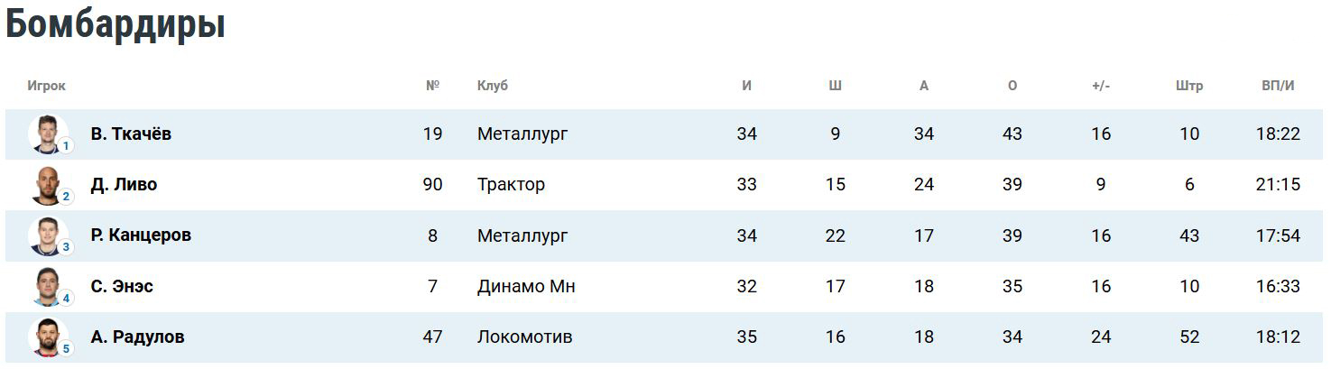 Он также является вторым снайпером КХЛ, пропуская вперед только Романа Канцерова из «Магнитки», отличившегося 22 раз в 34 встречах.