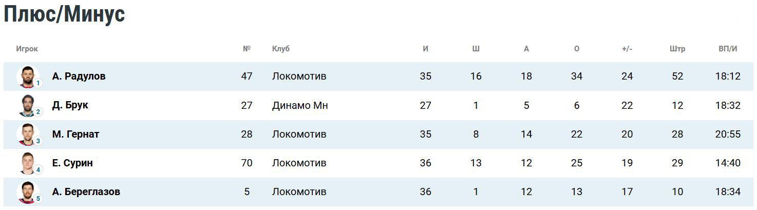 По показателю «+/-» 26-летний канадский нападающий «Динамо» Джошуа Брук уступает лишь Александру Радулову из «Локомотива» — 22 против 24.
