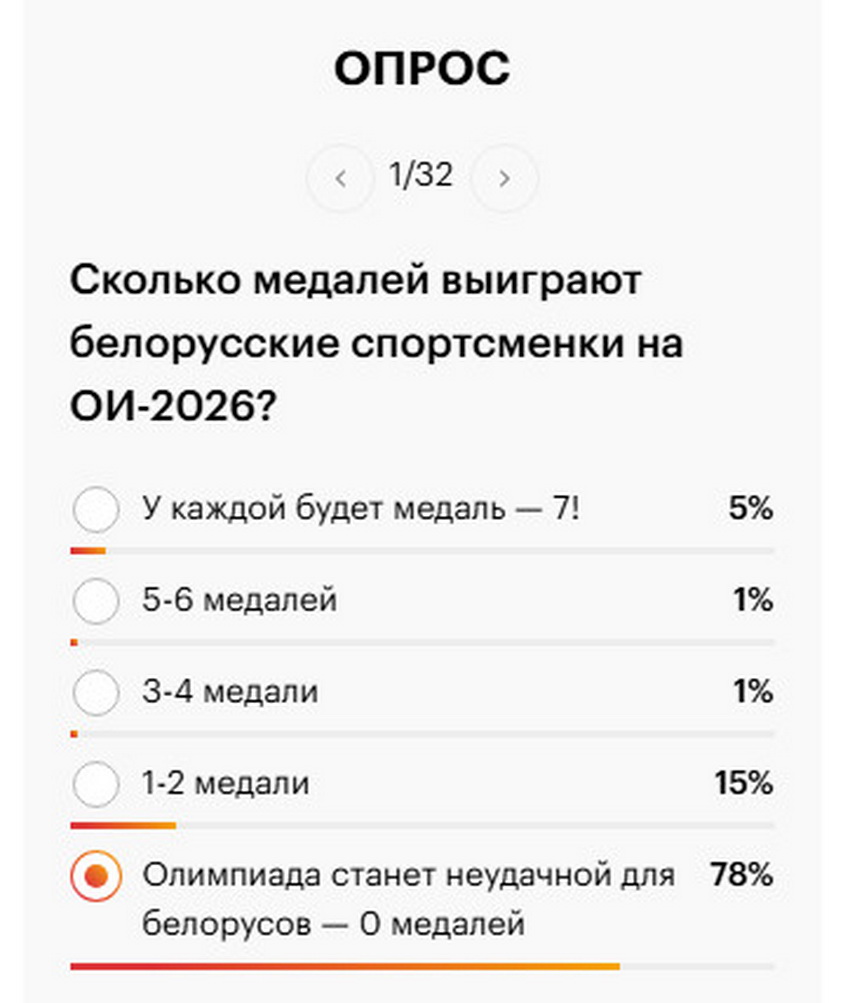 В опросе Pressball.by на тему количества возможных белорусских наград на Олимпиаде-2026 приняли участие более 1100 пользователей.