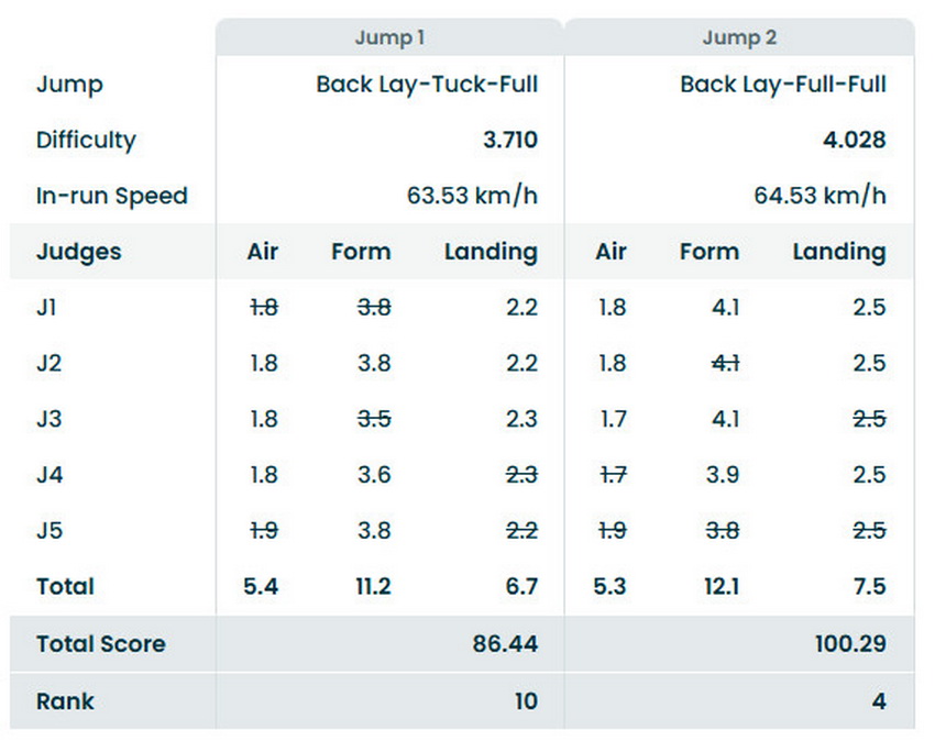 Обращает на себя внимание тот факт, что в решающей второй попытке, которую Гуськова предельно для себя усложнила, наивысшие баллы в зачет белоруске выставила украинский судья Ольга Полюк (воздух — 1,8 балла, форма прыжка — 4,1, приземление — 2,5).
