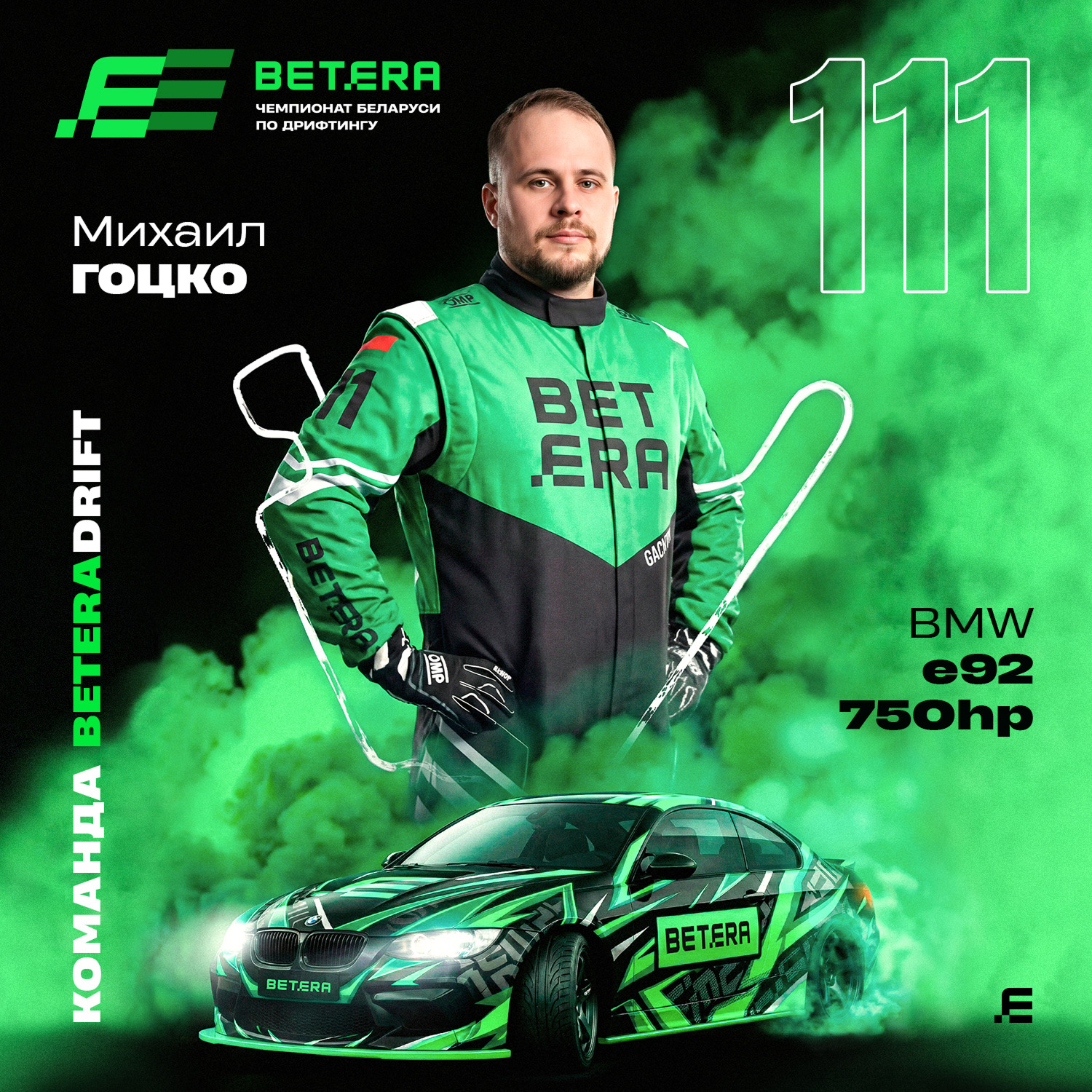 В этом году Михаил построил под Betera-чемпионат Беларуси абсолютно новый автомобиль — BMW E92 на 750 л.с. По словам самого пилота, благодаря команде механиков в машине он уверен.
