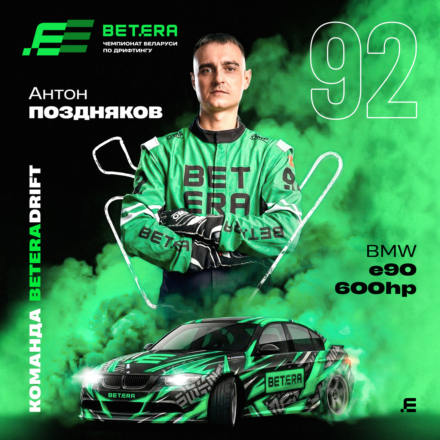 Новый визуальный стиль Betera чемпионата Беларуси по дрифтингу на сезон 2026 — это дух трека и путь к победе через упорство и разумный риск. И, конечно, про то, что даже внутри одной команды гонка никогда не заканчивается.