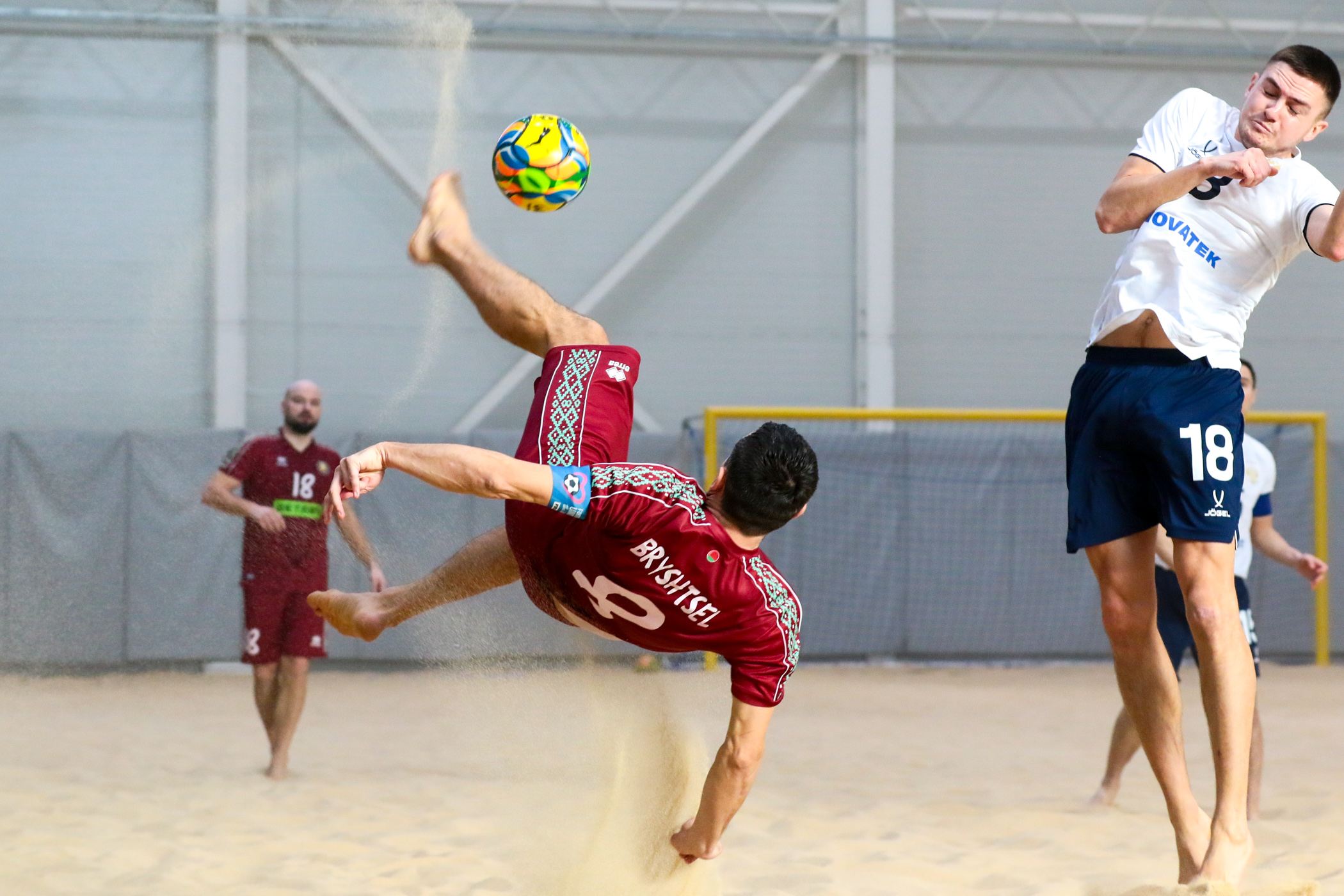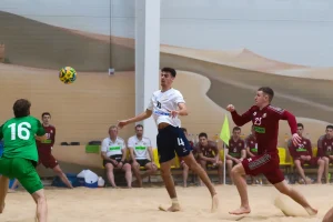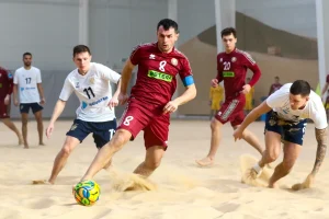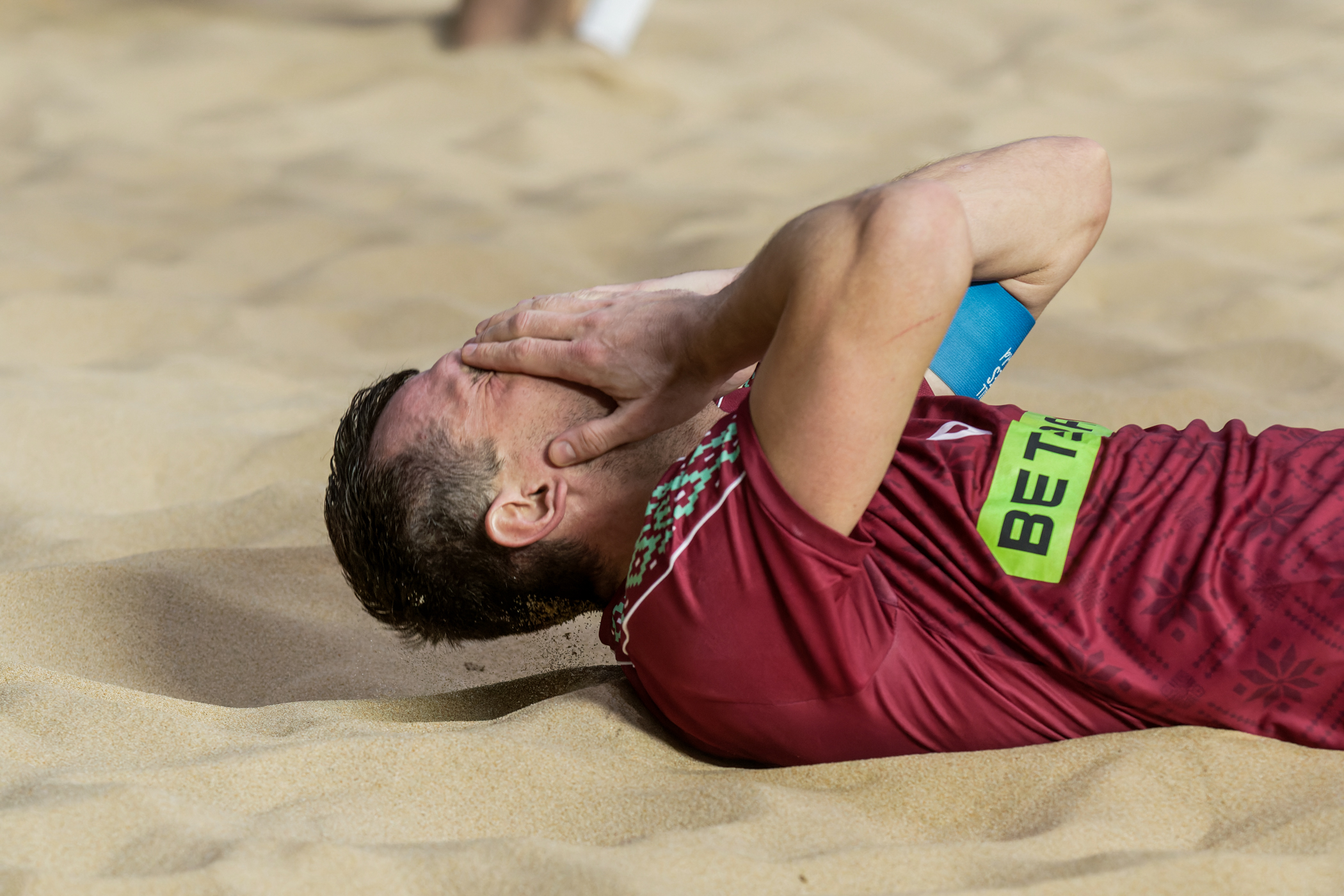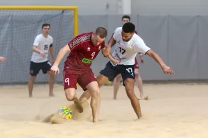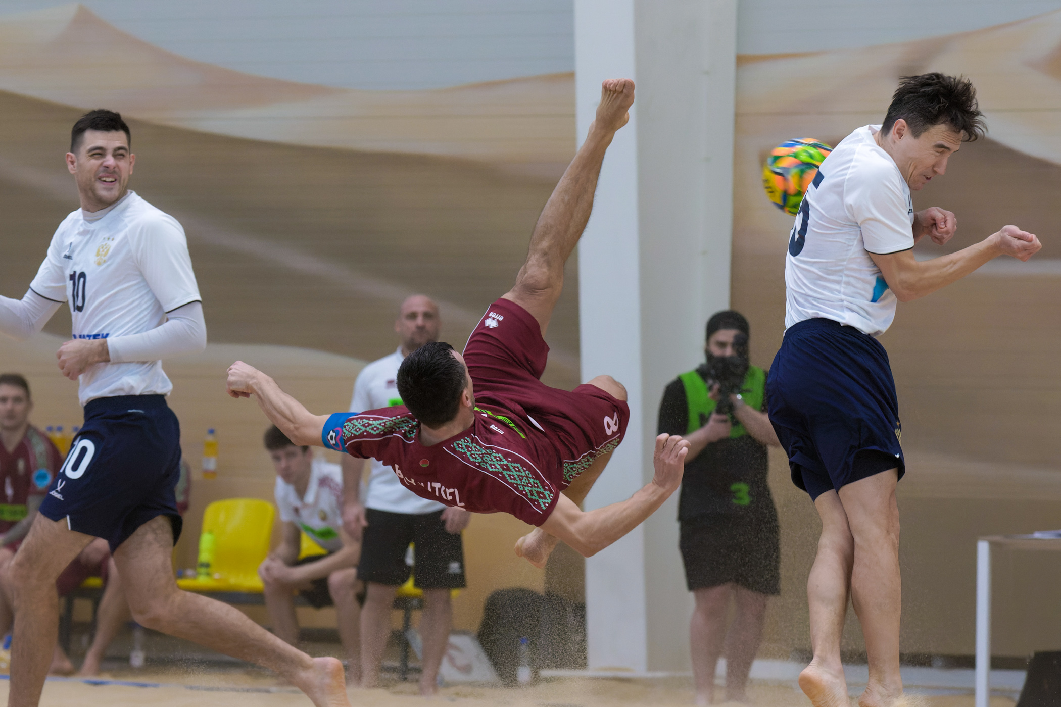 Сборные Беларуси и России провели в Минске в Центре пляжных видов спорта «Песчаная дюна» второй товарищеский матч. Поединок завершился победой российской команды.