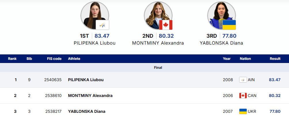 Тройку призеров замкнула украинка Диана Яблонская (77,80).