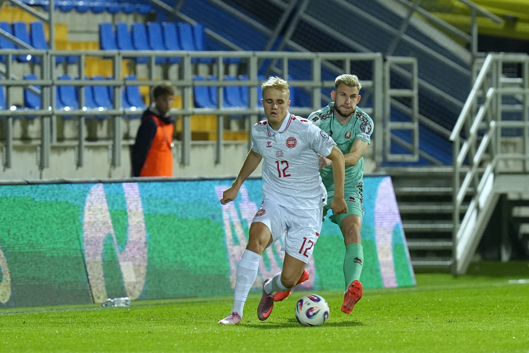 Однако положение дел в обороне команды Карлоса Алоса, мягко говоря, оставляло желать лучшего. Причем сквозняки прогуливались на обоих флангах обороны. Пигас с переменным успехом пытался угнаться за Доргу и Фрохольдтом, а Печенину приходилось сдерживать Исаксена и Кристенсена, который быстро понял, что может преспокойно покидать свою позицию правого защитника и помогать партнерам перманентно расшатывать оборонительные построения белорусов.