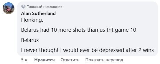 — В этой игре Беларусь сделала на 10 ударов больше, чем мы. Беларусь… Никогда не думал, что впаду в депрессию после двух побед.