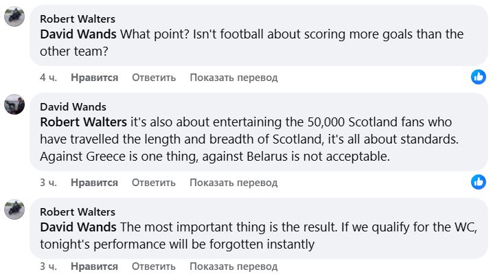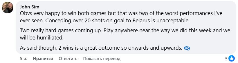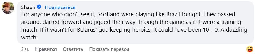 — Ужасное выступление. Беларусь должна была выиграть, но победа есть победа для шотландцев.