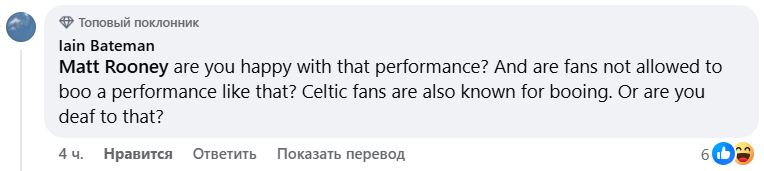 Ответ: Довольны ли вы этим выступлением? И разве болельщики не имеют права освистывать такое выступление? Болельщики «Селтика» тоже известны своим освистыванием. Или вы к этому глухи?