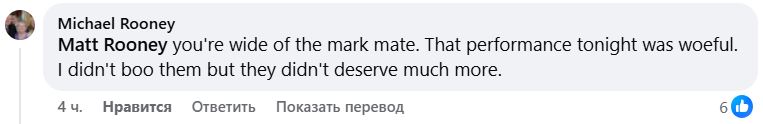 Ответ: Я был там сегодня вечером. Разочарован освистыванием. Я никогда не освистываю свою команду, хотя болею за команду из чертовой лиги 2!