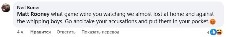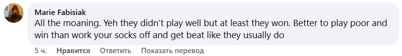 Ответ: Какую игру ты смотрел? Мы чуть не проиграли дома, да еще и мальчикам для битья. Иди и засунь свои обвинения себе в карман.